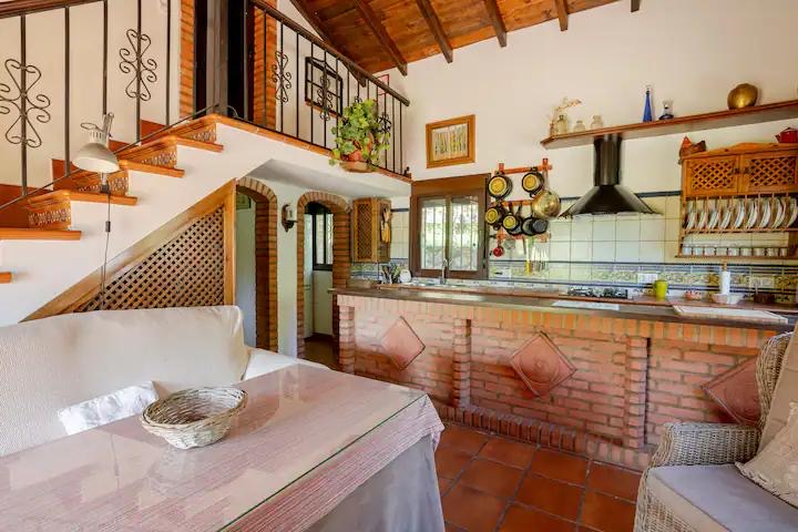 La casa cuenta con 3 amplias habitaciones decoradas con gusto, una cocina totalmente equipada y una sala de estar con chimenea, ideal para disfrutar de las noches frescas.